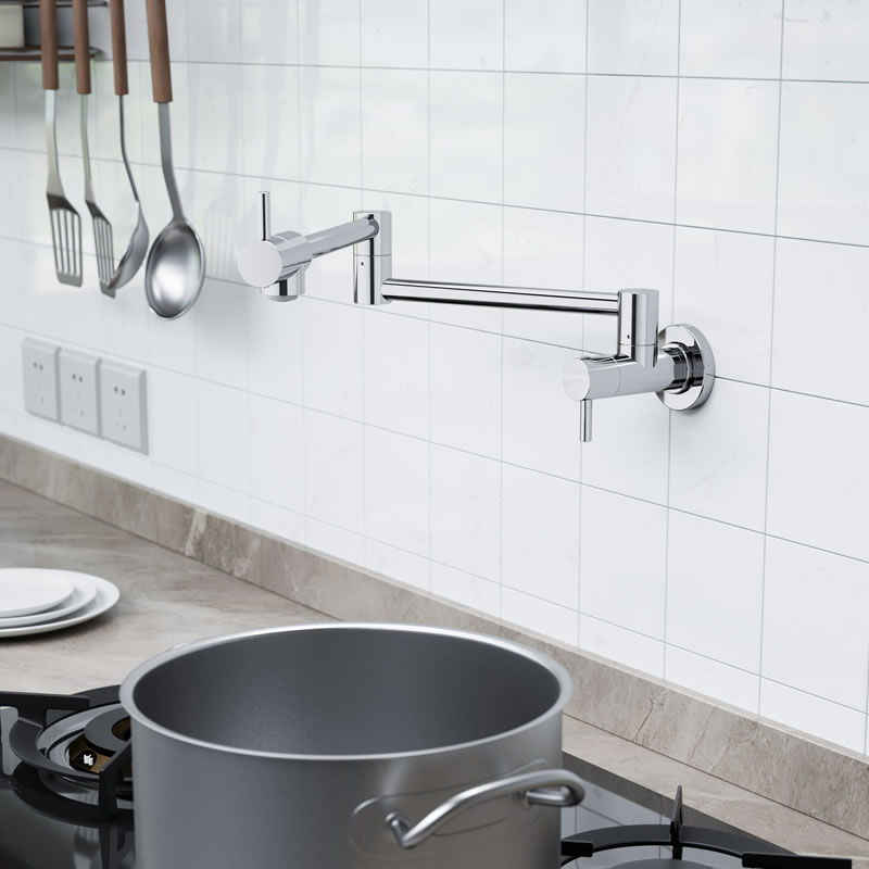 Wall Mounted Pot Filler with Two Handles Kitchen Faucet T2028A Polished Chrome